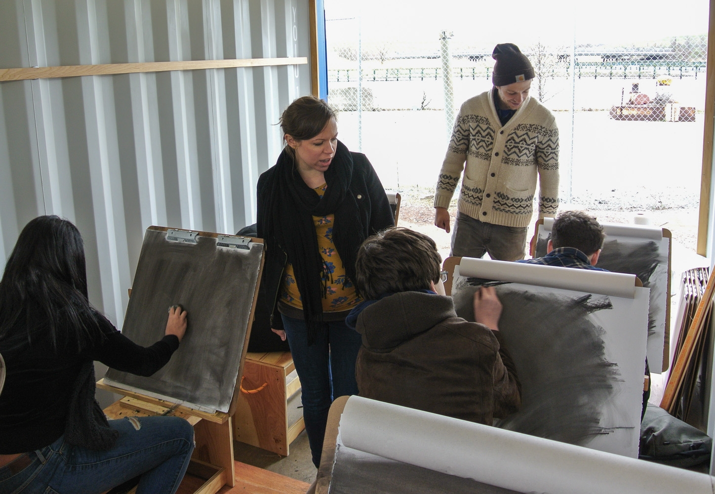 The workshops use charcoal, and depending on the advancement of the students, ink on paper.